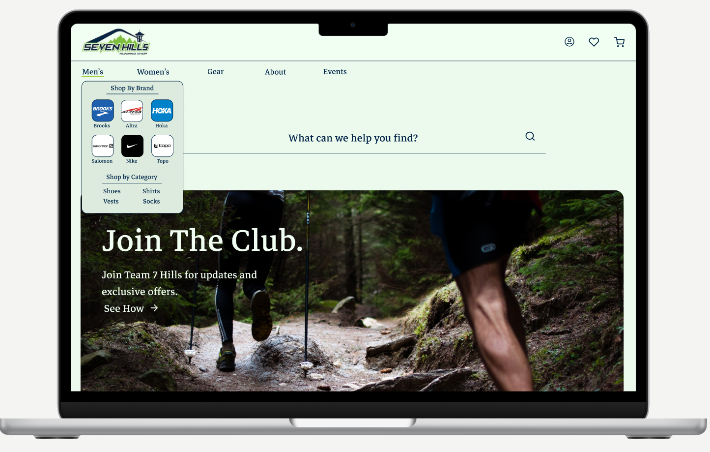 Seven Hills Running Shop is a specialty running store located in Seattle, WA. Seven Hills has a dedicated staff who uses their extensive knowledge to provide the best service to their customers. However, their current website is a different story. Riddled with navigation and usability issues, customers have a hard time using the website to complete tasks.